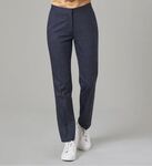 64% Polyester, 34% Viscose, 2% Lycra. Slim leg, front hook fastening, 2 side pockets, mock hip pockets, feature jogger waist. Half hem width at size 12R = 17.5cm