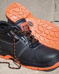 EN 20345:2011 S1P SRC, Steel toe-cap and steel midsole for underfoot protection, Padded collar and tongue, Energy absorption heel, Dual density polyurethane sole, Water resistant leather, SCR slip resistance, Sole resistance to oil, Scuff cap, Laces supplied: Orange/Black, Orange and Black