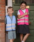 Generous in side allowing to be worn as an over garment, Grey polyester bound edges, 50mm sewn on safety tapes, Cut away label, Conforms to EN1150: 1999 (orange and yellow only), Height: 121cm 140cm 158cm, Age: 4-6yrs 7-9yrs 10-12yrs